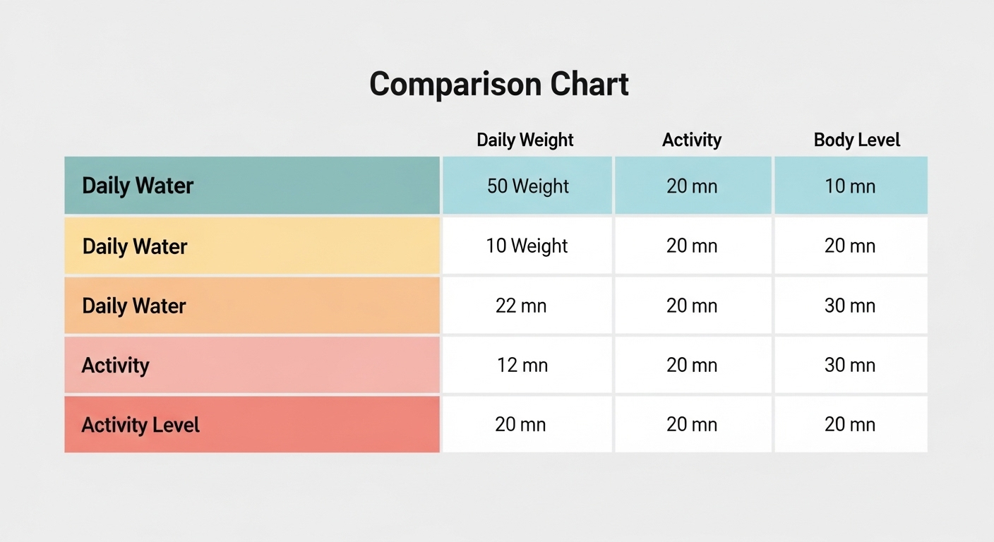 개인차 반영한 맞춤형 수분 섭취 가이드: 비교표로 한눈에 보기